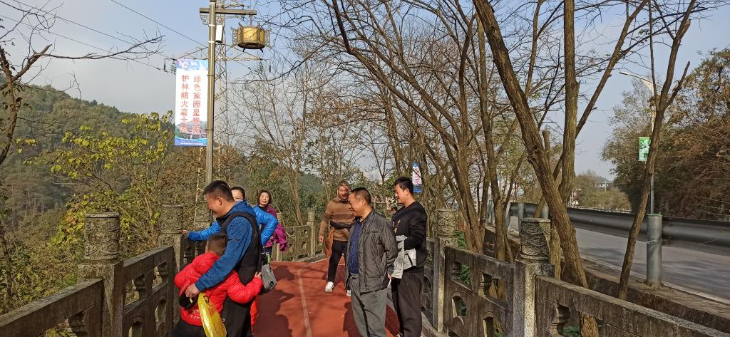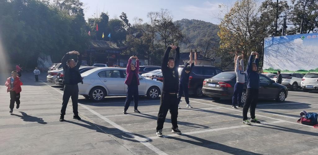 徒步路线自江南校区图书馆起,沿南环路向西,途径香溪路,沿香溪洞景区步行栈道上行,至香溪洞景区广场,在广场集体演练太极拳、五禽戏、八段锦、广场舞等健身项目后,徒步香溪洞景区,出景区后原路返回学校。途中绿水青山,暖阳和煦,人人看人人摸教工精神饱满,欢声笑语不断。
