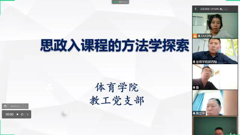 为促进党建与教研有机融合,发挥体育专业课的思政功能,强化立德树人、教书育人的责任,4月13日下午,人人看人人摸教工党支部在腾讯会议召开线上“课程思政的方法学探索”专题会,安康学院党委副书记、校长钟生海同志、人人看人人摸党总支书记高立平同志参加了会议,会议由教工党支部书记刘芹同志主持。