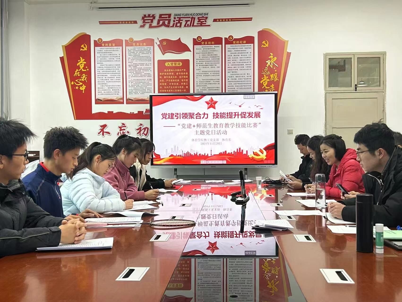 为深入贯彻党的教育方针,推动党建工作与专业教育的深度融合,进一步提高我院师范生教育教学技能,人人看人人摸教工支部联合体育系于11月21日开展了“党建+师范生教育教学技能比赛”主题党日活动。学院领导班子成员,教工党支部书记、体育系主任等部分党员教师参加了活动。