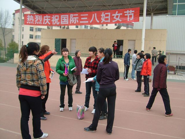 由安康学院工会主办、女工委员会承办、体育系协办的2011年庆祝“三八”国际劳动妇女节趣味体育活动于3月5日在学院东校区田径场举行。此次专门设计的乒乓球投篮、踢毽子、50米跳绳跑、30米两人背部运球、沙包进筐、踢“保龄球”、两人三足走、综合接力等比赛项目深受大家喜爱,使女教工们锻炼了身体,愉悦了身心。