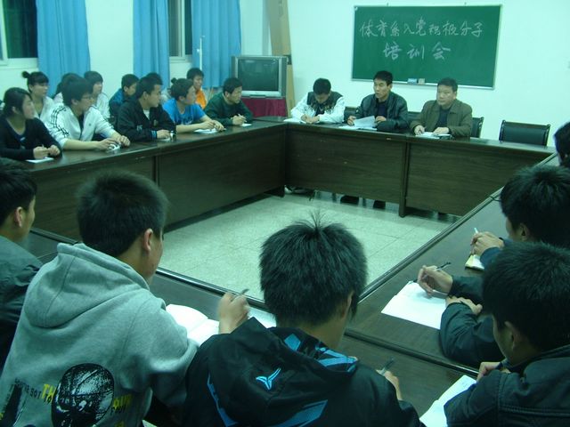 2011年3月30日晚7:30,体育系党总支在系会议室召开入党积极分子培训会,系党总支书记冯德学、宣传委员鲁宗成、学生党支部书记梁鸿和34名学生入党积极分子参加了会议。会议由系学生党支部书记梁鸿主持。