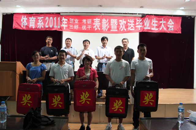 6月27日上午,体育系在1号教学楼六楼报告厅召开了2011年“考研”、“创业”、“三好”、“优干”表彰暨欢送毕业生大会,学院党委副书记胡鸿晓教授、体育系全体教职工和二、三、四年级全体学生参加会议,大会由总支书记冯德学主持。