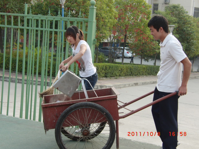 在卫生清理过程中,大家争先恐后,找活干,抢着干,不怕脏,不怕累,虽然汗水浸湿了衣服,灰尘污染了肌肤,但志愿者们始终热情高涨,用自己的实际行动表达了对生活、对环境的热爱,对用自己的劳动换来了校园的美丽而感到欣喜。