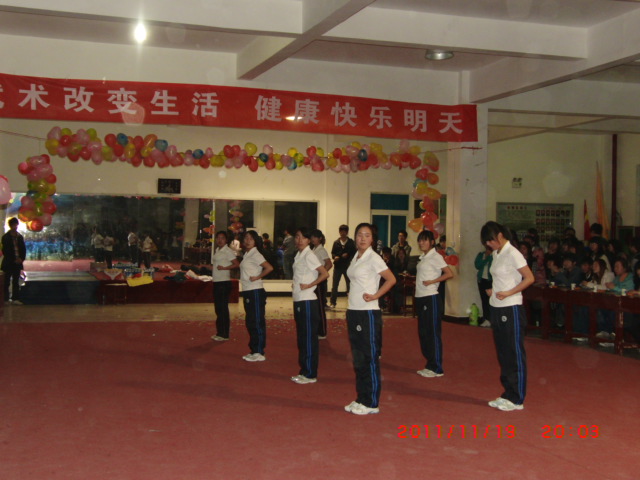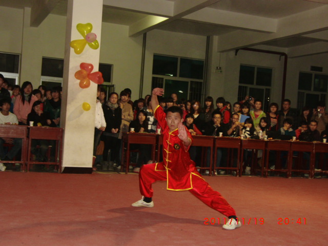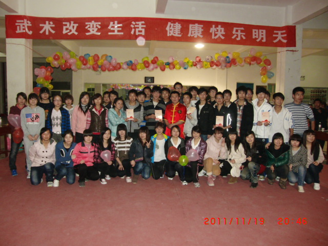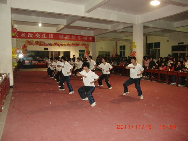 晚会得到了体育系的大力支持,体育系副主任鲁宗成出席晚会并讲话。指导教师郭西魁讲话,鼓励武协会员在注重技术训练的基础上不断提高武术文化修养,并现场表演了红拳套路,给武术协会赠送了武术资料。武术协会会员们为观众表演了长拳、太极拳、散打和歌曲、健美操等节目,展示了在协会中的学习成果,丰富了同学们的业余文化生活,提高了同学们对武术的兴趣。