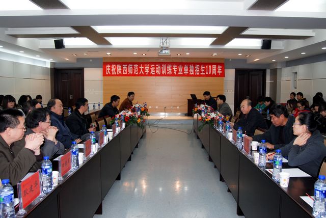 2011年12月26日上午10:00,陕西师范大学运动训练学专业单独招生十周年纪念大会在陕西师范大学雁塔校区崇鋈楼二层闻道堂隆重召开,师大体院领导班子成员、师生代表、离退休教师代表、特邀嘉宾100余人参加了纪念大会,我系副主任鲁宗成和系办主任黎远军应邀参加了会议。