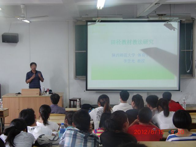 聘任仪式结束后,李登光教授为体育系师生做了题为“田径教材教法研究”的学术报告。
