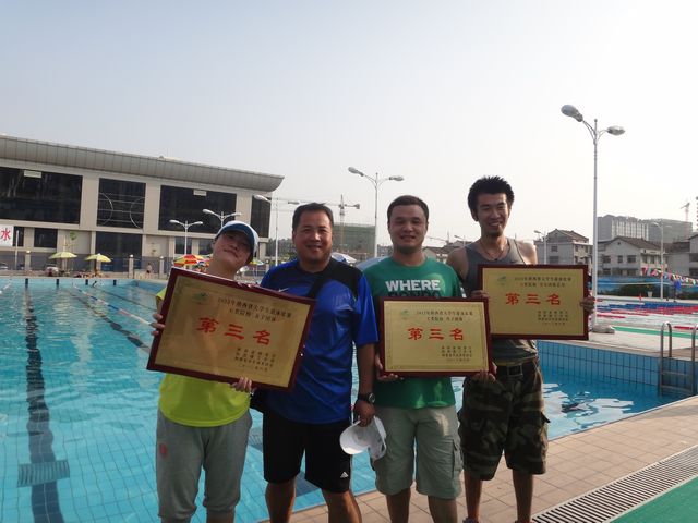 2012年陕西省大学生游泳比赛于6月18—19日在陕西理工学院举行,共有包括西安交通大学、陕西师范大学在内12个高校的137名运动员参加了本次比赛。我校第一次派队参加。经过两天拼搏,我校游泳队获一项亚军,两项季军,有六项进入前六名,夺得体育院系组(C类)男女团体总分第三名、男子团体第三名、女子团体第三名三个奖牌,队员何振东被赛会评为“优秀运动员”。