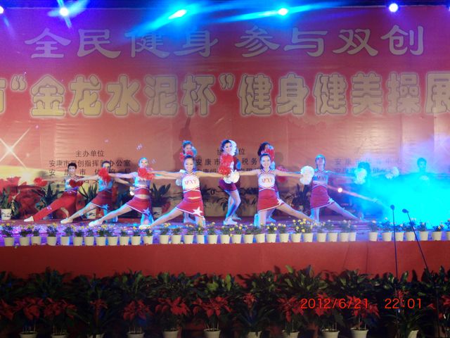 我校健美操队于6月21日在金州广场参加了安康市“金龙水泥杯”健身健美操展示活动。本次活动主题为:“全民健身、参与双创”,由安康市双创指挥部办公室、安康市体育局、安康市妇女联合会联合主办,本次活动共有来自各县区的16支代表队参加。本次比赛共设特等奖1名、一等奖3名、二等奖4名、三等奖6名、优秀奖2名,我校健美操队以突出的表现夺得了本次比赛的特等奖。