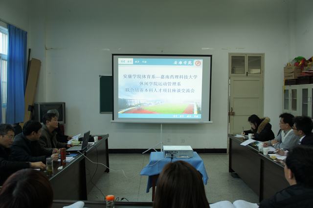 座谈会上双方介绍了各自的办学情况,就安康学院与嘉南药理科技大学签订的联合培养本科人才项目协议相关问题进行了明确,对两系联合培养体育专业应用型本科人才方案进行了深入探讨,初步商谈了合作形式、合作规模、时间、课程设置等具体问题。两位教授的来访,拉开了我系与嘉南药理科技大学休闲学院运动管理系联合办学的序幕。