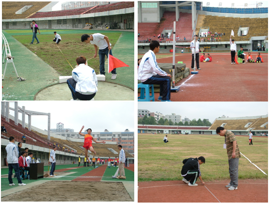 田径比赛规模大,参赛人数多,体育系五位教师和90余名学生在裁判工作中恪守体育道德,公正合理的判罚,充分展示了我校师生良好的思想品德和专业能力。