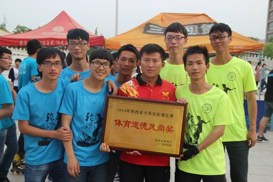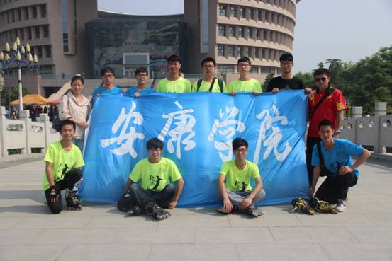由陕西省教育厅主办的首届全省大学生轮滑比赛于5月17日至18日在陕西科技大学举行,共有33所院校近300名运动员参加了比赛。我校轮滑协会派出8名学生组队参加了男子乙组速度过桩、花式绕桩、双人花式绕桩和花式刹停4个项目的比赛。经过奋力拼搏,李行和闫琪取得了双人花式绕桩项目第7名,王明明和彭强两位同学被授予“优秀运动员”荣誉称号。