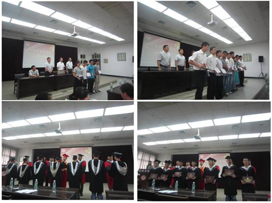 系副主任鲁宗成老师宣读了2010级学生四年学业及学籍变动情况;宣读了优秀实习生、优秀毕业生名单、考上研究生学生名单。系主任冯德学老师宣读了2010级毕业学生名单、学士学位授予名单。