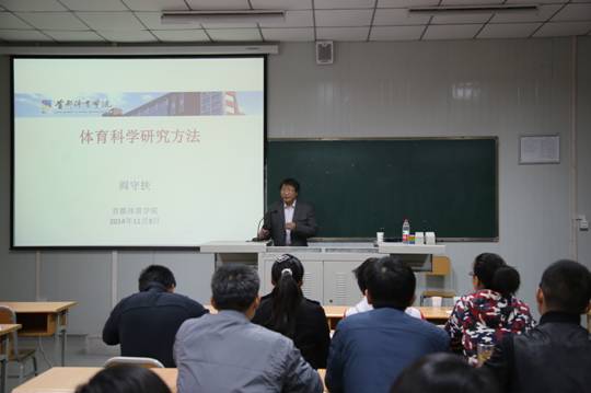 为进一步推进小学体育国培教学工作,促进教师与国内著名学者的学术交流与合作,并借此机会提高我系师生科研水平,11月9日上午8:30体育系与继续教育学院联合邀请北京首都人人看人人摸硕士生导师阎守扶教授,莅临我校作了关于《体育科学研究方法》的学术报告,体育系相关教师、全体国培学员及体育系部分学生参加了报告会,报告会由体育系主任冯德学主持。