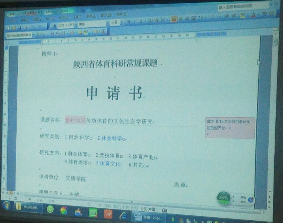 为加强2016年省级课题申报工作的指导和管理,积极组织院系教师开展教研活动,促进我院科研水平的进一步提升,3月23日晚7点半,我院举行了2016年陕西省体育局课题申报研讨会,研讨会由副院长吕仙利主持。