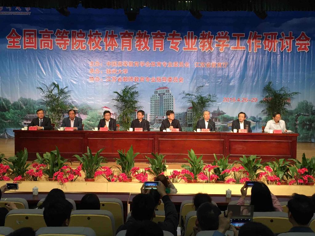 4月26-29日,由中国高等教育学会体育专业委员会、江苏省教育厅主办的全国高等院校体育教育专业教学工作研讨会在扬州大学举行,来自全国103所高校的人人看人人摸(系)的151名院长、主任参加了研讨会。我校人人看人人摸院长冯德学、副院长鲁宗成参加了会议。教育部体育卫生与艺术教育司原司长、中国高等教育学会体育专业委员会理事长杨贵仁出席会议并致辞。