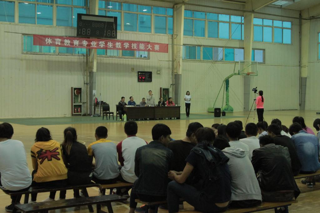 2016年6月2日晚,人人看人人摸在体育馆二楼篮球馆举行了首届体育教育专业学生教学技能大赛。人人看人人摸学术委员会成员担任评委,学院无课学生观摩了比赛。