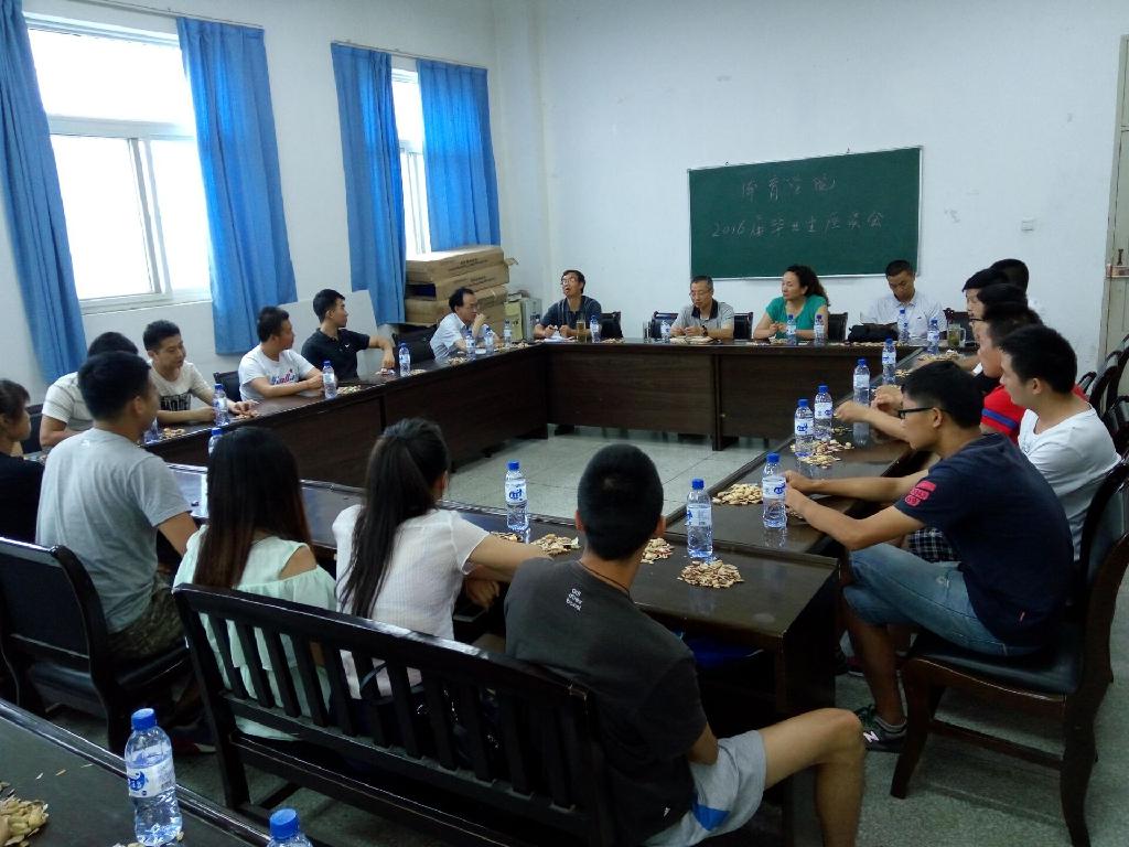 7月3日下午4:00,我院在体育馆会议室召开了2016届毕业生座谈暨体育教育专业本科第四轮人才培养方案修订研讨会,办学督导、学院领导、两室主任与20余位应届毕业生就体育教育专业本科2012级人才培养方案的实施效果展开热烈讨论,广泛听取学生大学四年对知识、技术、能力培养及教学管理等方面的体会、收获、意见和建议。应届毕业生们根据自己在教育实习、考研、招教考试、工作应聘等活动中遇到的种种问题,对我院2012级人才培养方案实施中实践课教学能力、裁判能力培养效果表示充分肯定,对足球、形体训练等课程的实用性提出意见和建议,对加强学生理论课教学能力培养、加强教育实习管理提出了宝贵的意见,为我院下一步对2016级人才培养方案修订提供了重要参考。