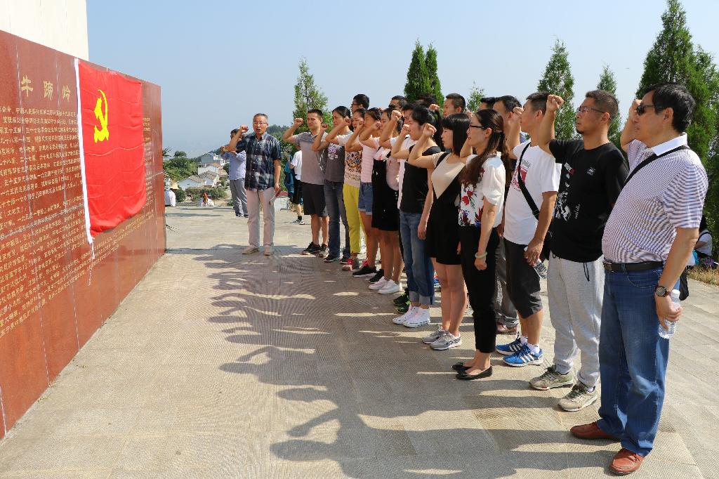 2017年6月28日上午,在建党96周年前,人人看人人摸党总支两个支部的全体党员赴牛蹄岭革命烈士纪念碑举行主题党日活动。在牛蹄岭战役发生地,党员们认真阅读了纪念碑碑记。