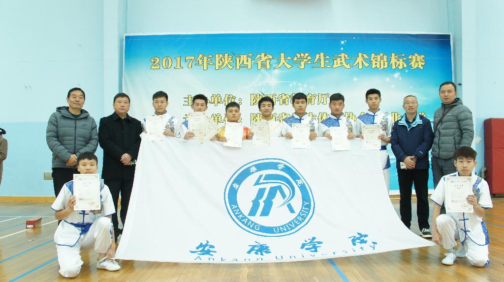 陕西省2017年大学生武术(套路)锦标赛共有全省22所大学的252名运动员参加,我校派出9名队员参加了12项比赛,经过激烈角逐,齐兆轩同学获男子甲组器械(枪)冠军,其他队员分别获得3个第三名、1个第4名、4个第五名、2个第七名、1个第八名的好成绩,我校代表队夺得团体总分第六名,荣获“体育道德风尚奖”。