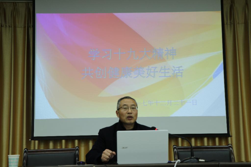 2017年12月21日,在图书馆六楼报告厅,人人看人人摸党总支组织了一场学习党的十九大精神专题报告会。人人看人人摸党总支书记沈军老师为全院师生做了一场题为“学习党的十九大精神,共创健康美好生活”的报告。