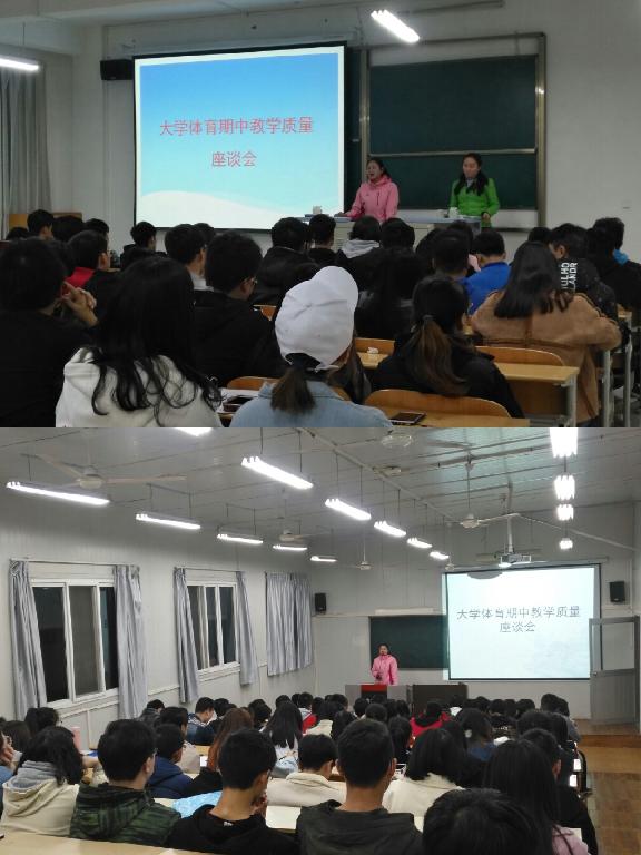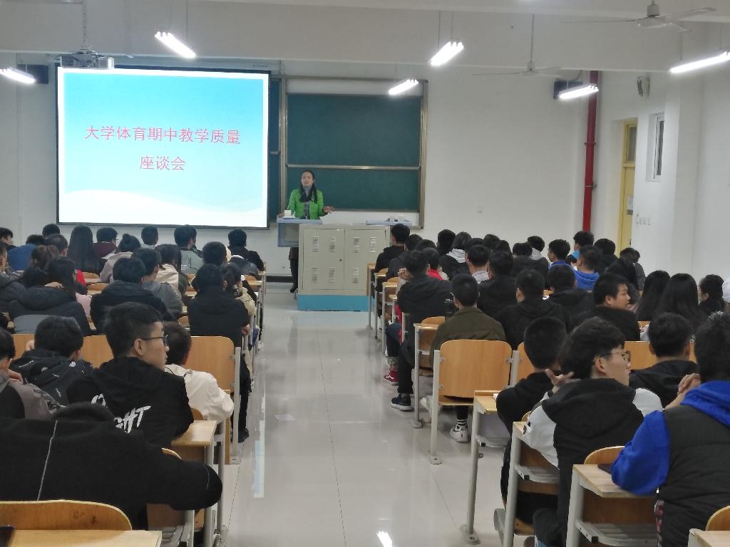 为了进一步推进大学体育教学改革,提高教学质量,大学体育教研室于2018年11月13日和14日分别在江北和江南校区召开了大学体育教学质量检查座谈会。会议由教研室主任李靖主持,人人看人人摸副院长吕仙利,教学督导朱涛,各二级学院体育部部长、2017和2018级各班班长、体育委员共225名学生参与了座谈。