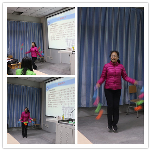刘老师还在报告中介绍了花样跳绳的比赛项目和比赛规则,演示了花样跳绳的基础动作,跳绳礼仪,播放了花样跳绳比赛视频。