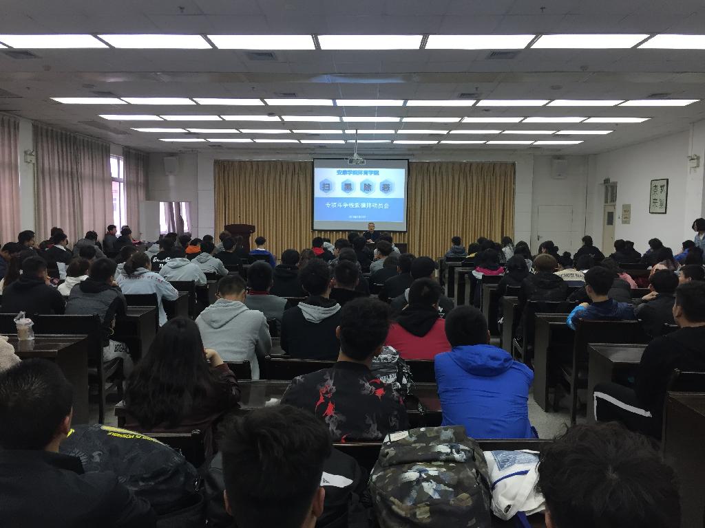 3月22日下午,人人看人人摸“扫黑除恶”专项斗争线索摸排动员大会在图书馆学术报告厅举行。学院党总支书记沈军、学工办主任郭建鹏,人人看人人摸2016级、2017级、2018级全体学生参加了会议,沈军老师做了动员讲话。
