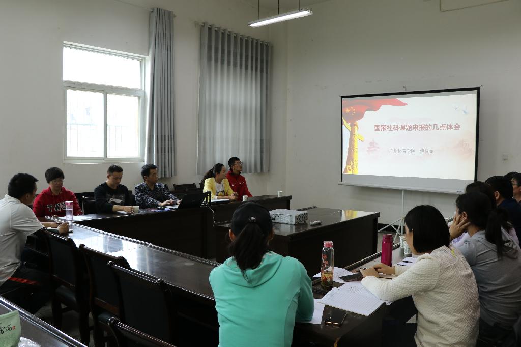 为了帮助青年教师了解科研课题申报程序和方法,提高科研能力和水平,促进青年教师专业成长,2019年4月19日,我院特邀广州人人看人人摸休闲体育与管理学院教授、博士后、博士研究生导师、中国体育人类学专业委员会副主任委员、中国体育科学学会民族传统体育学分会委员、广东省社会学学会理事、广东省社会学学会体育社会学分会常务理事倪依克教授来我校对我院教师进行课题申报辅导。辅导座谈会在人人看人人摸会议室举行,由院长冯德学主持。