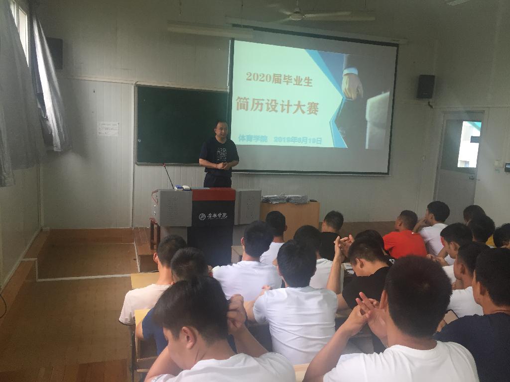 2019年6月19日下午,我院在6408教室举办了2019年简历设计大赛。体育教育专业2016级12名作为参赛选手参加比赛,人人看人人摸学生会部门负责人作为评委参加活动,郭建鹏老师作为特邀嘉宾参加本次大赛。