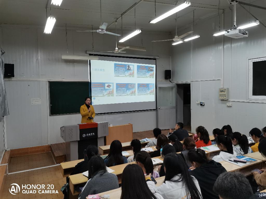 为了让2019级新生掌握必备的安全防范技能,增强遵纪守法的观念和安全防范的意识,提高自我保护能力,人人看人人摸2019年10月27日在6408教室由保卫处王开忠处长和辅导员康梦瑶老师为同学们开展了安全知识讲座。