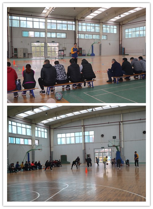 接着观摩了黄志涛老师的篮球课。在5分钟说课环节,就篮球胯下运球动作技术,讲述了教学目标、课堂常规、教学方法、教学过程的设计思路;通过15分钟的教学演示环节,展示了篮球胯下运球技术教学准备部分、基本部分、结束部分的内容与方法,突出了以学生为主、激励式教学、课程思政等教学创新亮点。