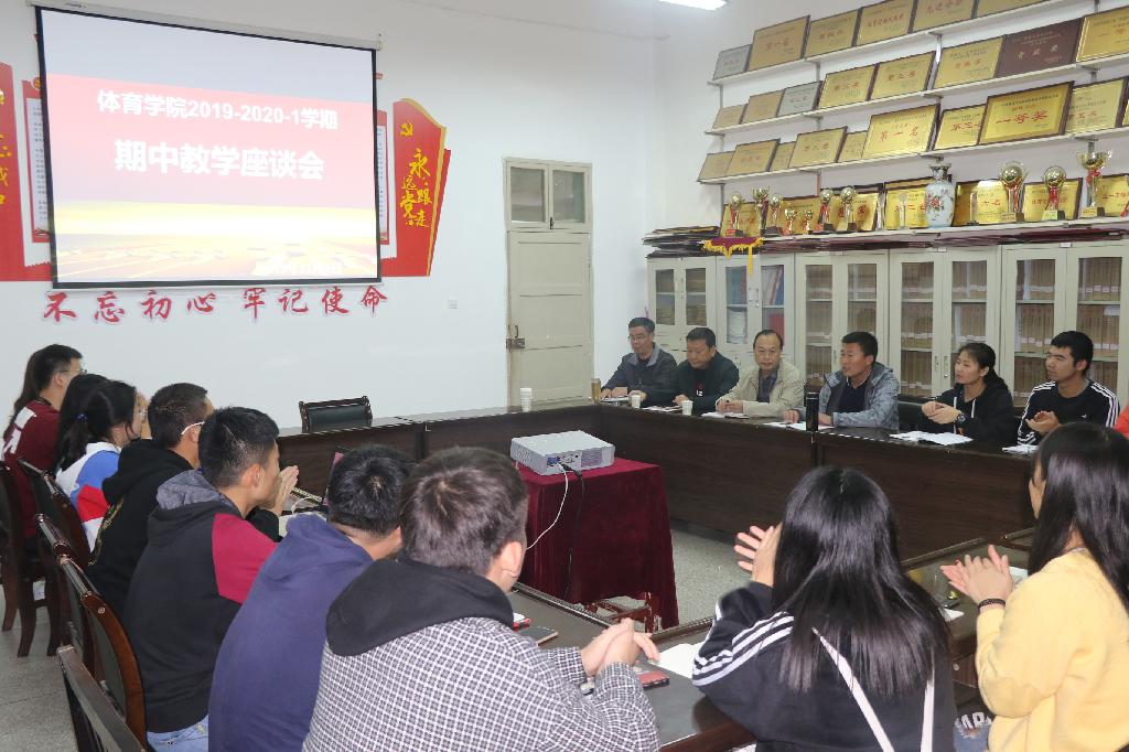 11月6日下午,我院在体育馆一楼会议室召开了2019-2020学年第1学期体育专业期中教学工作座谈会。学校教学督导单福东教授、人人看人人摸院长冯德学教授、人人看人人摸主管教学副院长鲁宗成副教授、体育系主任郭西魁副教授及我院各年级学生代表30余人参加了座谈会。会议由郭西魁主持。