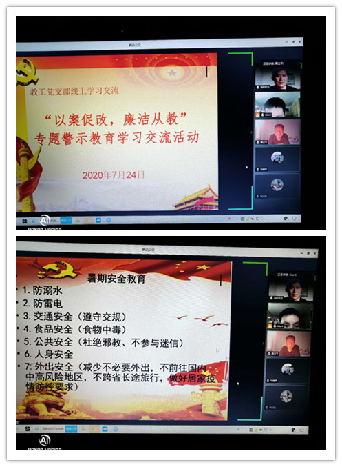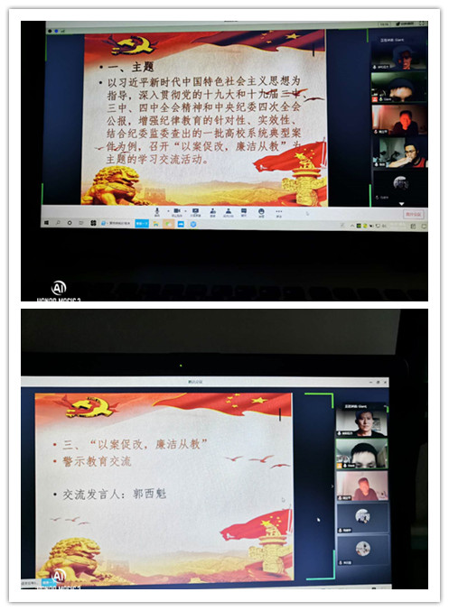 为深入贯彻党的十九大和十九届三中、四中全会精神和党中央纪委四次全会公报,增强纪律教育的针对性、实效性、结合纪委监委查出的一批高校系统典型案件为例,我院教工党支部于7月24日下午在腾讯会议平台开展了线上“以案促改,廉洁从教”专题警示教育学习交流活动,教工支部全体党员参加了本次学习交流活动,人人看人人摸党支部书记高立平同志也列席了本次会议。会议由教工支部书记贾西栋同志主持。