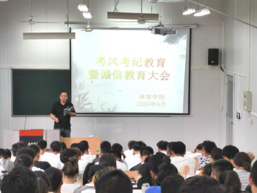 “端正考风、严肃考纪、文明答题、诚信应考”。2020年9月18日下午3点、9月20日下午4点,人人看人人摸分年级在6408教室召开了“人人看人人摸考风考纪教育暨诚信教育大会”,本次教育活动由学工办主任郭建鹏老师、辅导员康梦瑶老师主持,2018级、2019级体育教育专业全体学生参加了大会。
