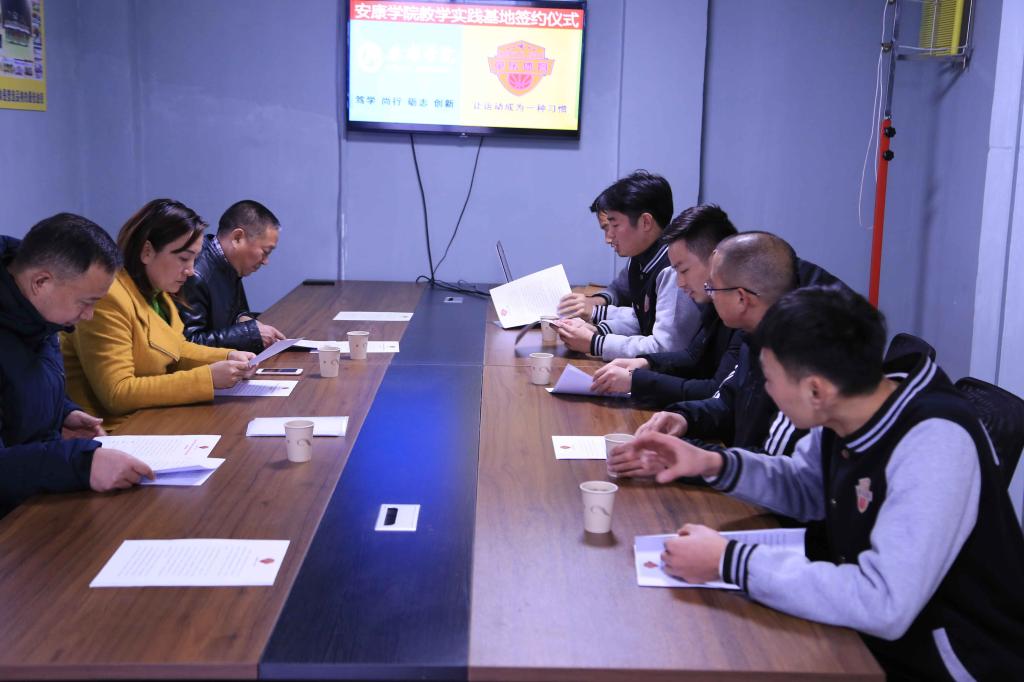 在走访过程中,考察组与我院近几年毕业在该公司就业毕业生开展座谈,向云镒、王维、刘开伟、张景波等参加座谈会,考察组全面了解在岗适应情况、待遇福利,知识体系和实际应用衔接,职业发展等问题。高立平书记对童乐体育优先接收我院毕业生表示感谢,希望与公司进一部加强合作,加大在我校接收毕业生力度,同时建立起校企合作培养人才模式,适应企业发展需求。在此倡议下,双方共同签署“安康学院实践教学基地”协议书,并在附小校区办公室举行挂牌仪式。