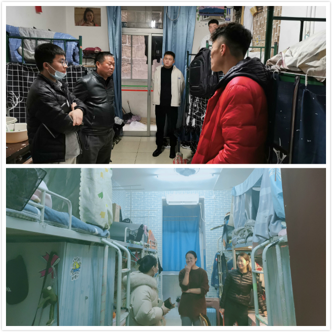 在学院所属学生宿舍,高立平、王立、康梦瑶一行分别对宿舍卫生和安全进行了仔细检查,详细了解各寝室学生返校情况,提醒同学们疫情防控仍然不能麻痹大意,要严格执行学校的防控制度,同时指出各寝室要养成良好的生活、卫生习惯,同学之间互帮有爱。希望同学们尽快投入学习,以崭新的姿态迎接新学期生活。