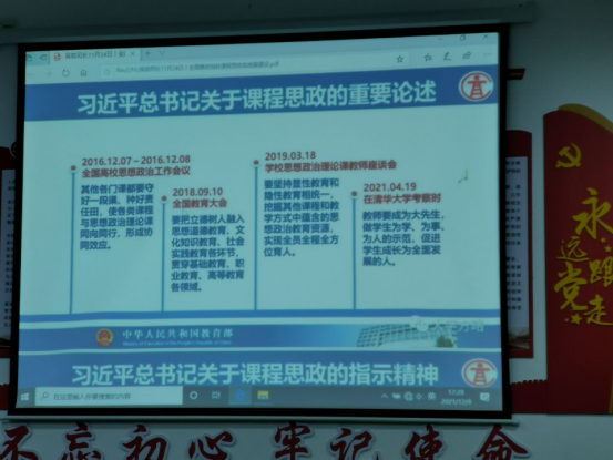 会议伊始,郭西魁同志传达了11月24日学校组织的“高校教师课程思政教学能力培训会”的会议精神。并解读了教育部高教司吴岩司长的“全面推进高校课程思政高质量建设”报告精神。