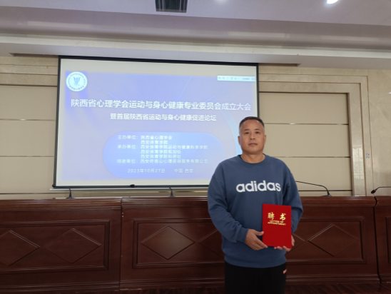 10月27日,陕西省心理学会运动与身心健康专业委员会成立大会暨首届陕西省运动与身心健康促进论坛在西安人人看人人摸成功举办。我院教师崔晓宇应邀参会,并被选为第一届陕西省心里学会运动与身心健康专业委员会委员。