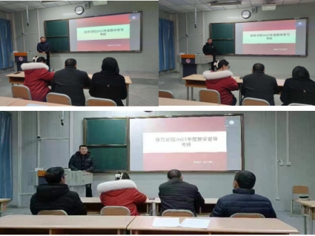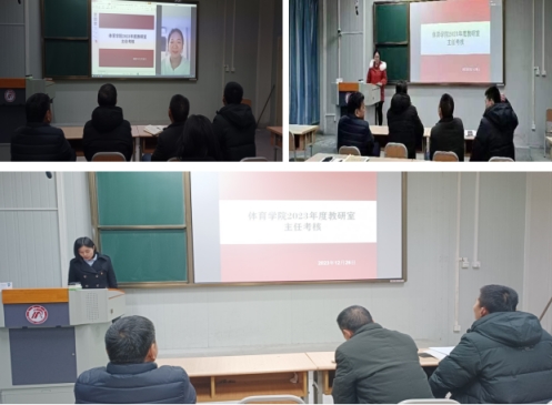 人人看人人摸领导班子高度重视考核工作,成立了考核小组,制定了考核方案,在本次专题考核会上分三个批次进行考核。首先,对人人看人人摸课程群负责人进行了考核,球类课程群负责人崔晓宇、操舞类课程群负责人陈治强、运动人体科学课程群负责人刘芹和学校体育学课程群负责人赵娇艳分别进行了年度总结汇报,考核组通过听取汇报、座谈和查阅工作记录的方式进行考核,并针对本年度工作中存在的不足对三位课程群负责人进行了现场反馈,并提出了下一步工作建议。