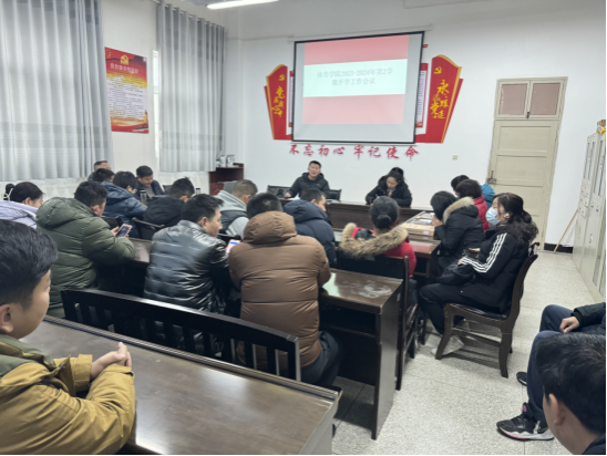 会上,副院长郭西魁带领参会人员深入学习了学校领导在2024年度工作会议上的讲话和学校2024年工作要点,结合学校年度工作要点和学院工作实际从审核评估和师范专业认证、一流专业建设、一流课程建设、安全稳定等方面提出贯彻落实的要求,要求全体教师认真学习贯彻学校2024年工作要点和学校领导讲话精神,勇于担当、勇于创新、勇于奉献,为学院高质量发展贡献自己的力量;副院长李靖就本年度科研项目申报、大学体育工作进行了安排。