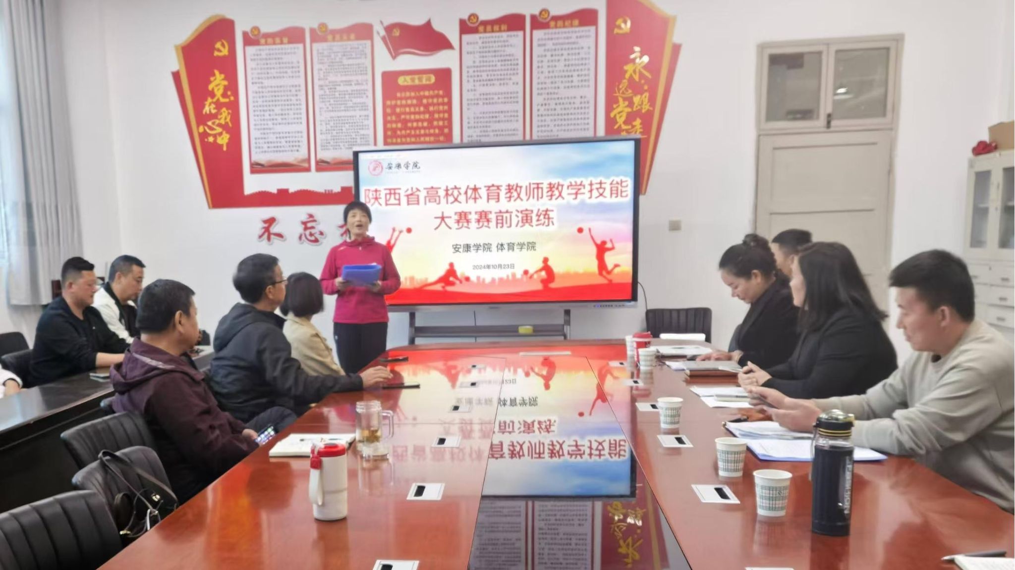 为使我院参赛教师更好备战陕西省高校体育教师教学技能大赛,10月24日下午,我院组织举办了陕西省高校体育教师教学技能大赛赛前演练活动。本次活动邀请人人看人人摸领导班子、教学督导作为评委,全体教师进行观摩,本次赛前演练活动完全按照正式比赛流程进行,为参赛教师模拟参赛环境。活动由大学体育教研室主任赵娇艳主持。