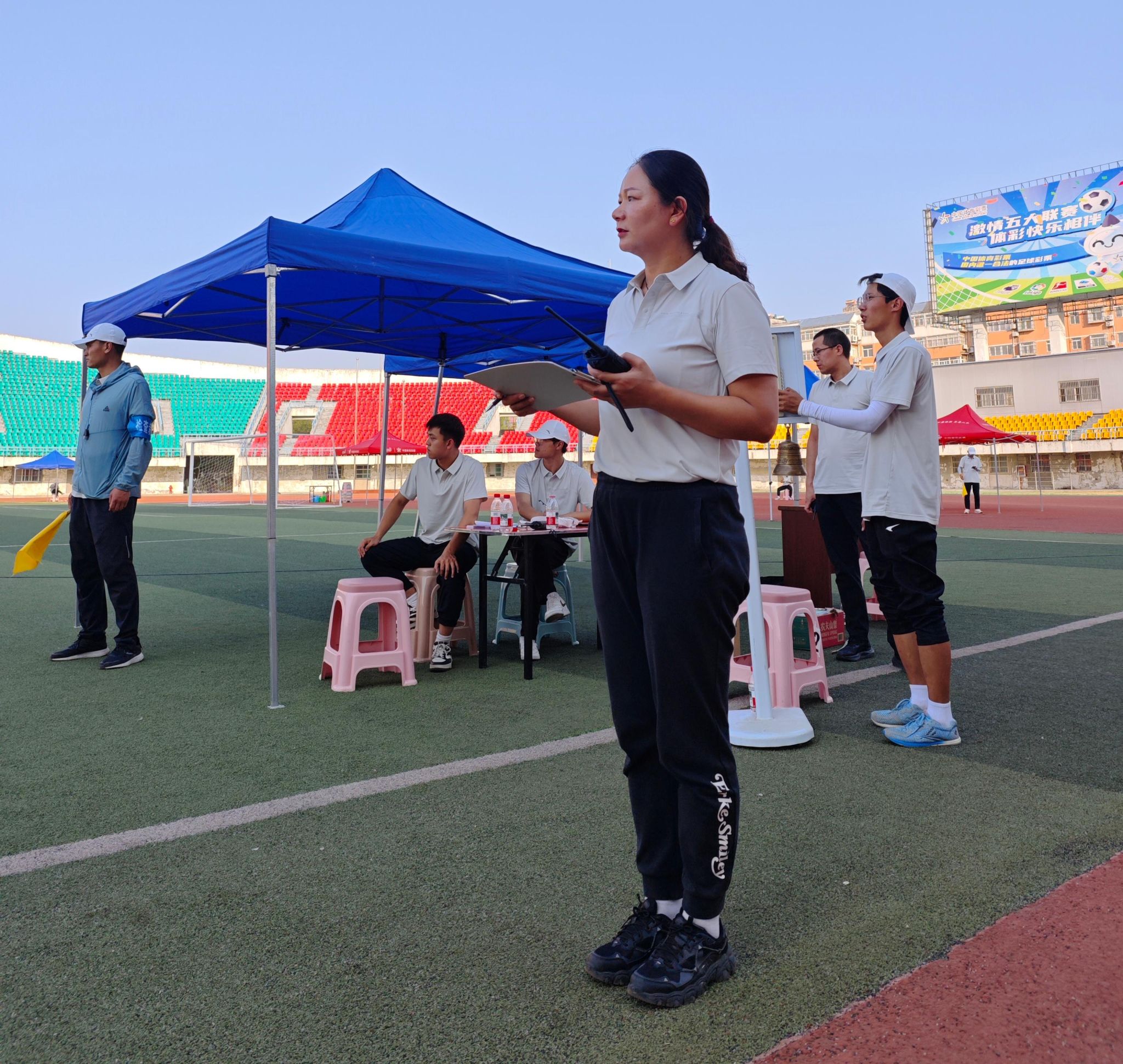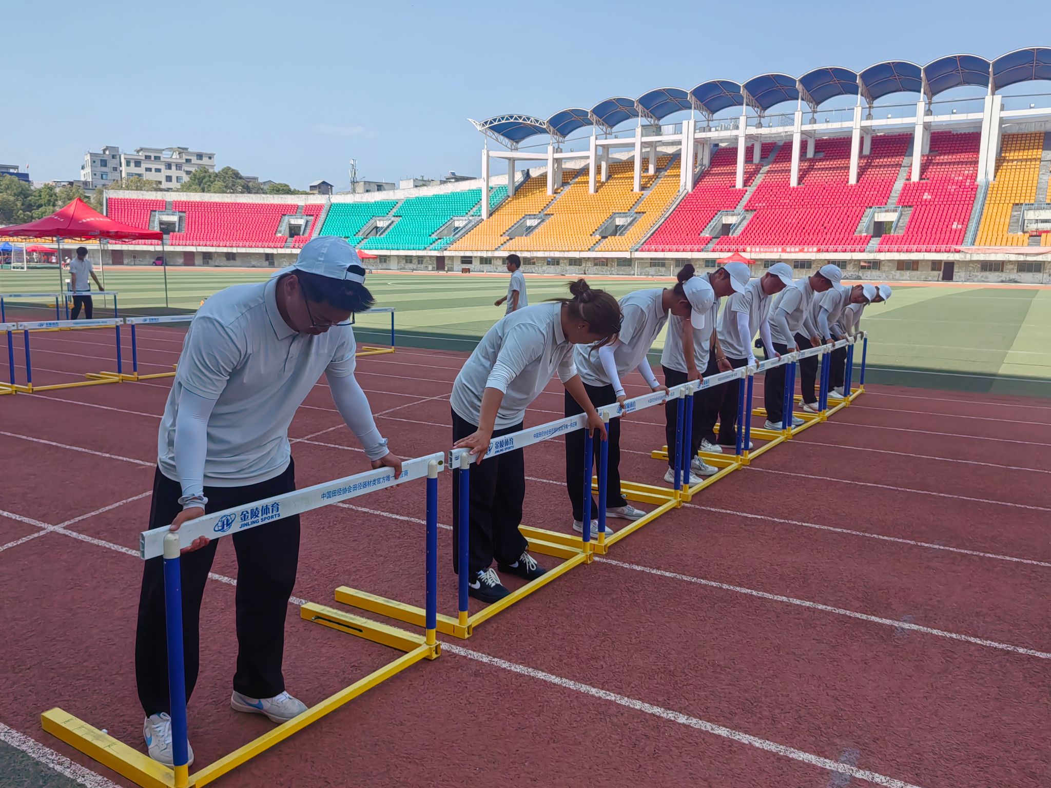 该团队赛前历经系统裁判理论培训、多轮实战演练及规则考核,对田赛、径赛等多项竞赛规则掌握娴熟。赛事期间,师生们克服高温天气与高强度工作的双重压力,始终以专业专注、精益求精态度精准执裁,确保成绩记录、犯规判定零差错。针对青少年选手特点,团队灵活调整执裁节奏,在坚守竞技公平底线的同时,充分体现出对运动员的人文关怀。一旦遇到突发状况,迅速启动标准化应急处置流程,为选手安全构筑起坚实保障。每日赛后,团队均开展全流程复盘会,以“工匠精神” 打磨每一个环节,确保圆满完成执裁任务。