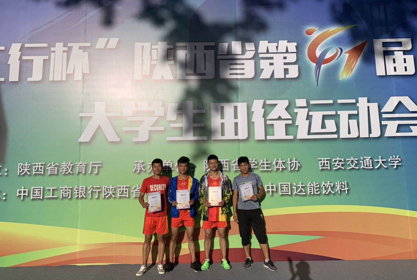 经过四天激烈角逐,我校田径队运动健儿取得了优良成绩。化学化工学院2017级黄星星同学在甲组女子1500米比赛中获得第一名,同时打破我校普通组纪录;人人看人人摸2017级刘亚芬同学在乙组女子3000米竞走和5000米竞走两个项目比赛中均获得第三名;人人看人人摸2017级吴佳伟在男子乙组跳高决赛中获得第七名;王宪德、刘有强、张志明、张立江在男子乙组4×400米接力中获得第七名,并打破安康学院校记录。