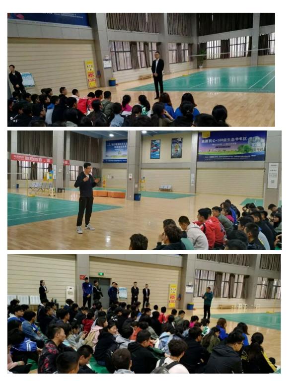 紧接着,高新斯珀特运动中心运营负责人朱明登代表安康斯珀特文化体育发展有限公司对全体师生的到来表示欢迎,为全体师生介绍了目前公司的基本概况、中心目前运营的项目及公司经营发展规划;勉励同学们但行好事,莫问前程。一定要坚定自己的人生目标,并为之去努力奋斗。