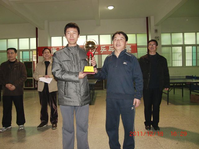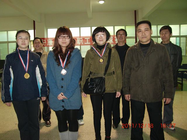 由安康学院工会主办、体育系协办的2011年教职工乒乓球比赛于12月16-18日在体育馆举行,比赛设团体、男子单打、女子单打3个项目,全校共有17个分会、56名教职工参加了比赛。经过三天激烈角逐,体育系分会获得团体冠军,政史系分会、艺术系分会分获二、三名。我系张凯、马磊老师分获男子单打第三名和并列第四名,易红君老师获得女子单打第三名。