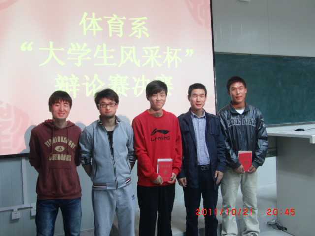 10月12日至21日,体育系学生分会宣传部和学习部联合举行了“大学生风采杯”辩论赛,经过预赛和决赛的激烈争夺,09级、10级、11级最终分获冠、亚、季军。