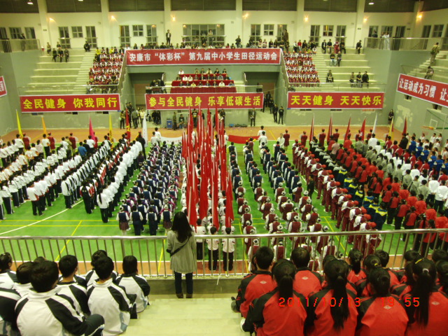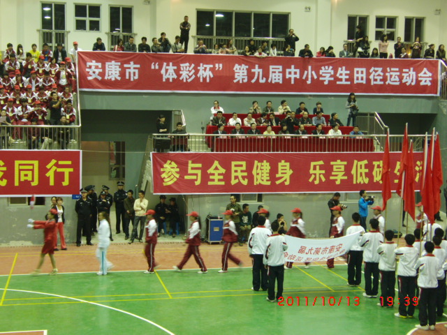 由市教育局和体育局联合主办的安康市“体彩杯”第九届中小学生田径运动会于10月13日至16日在汉滨区金州广场田径场举行,全市九县一区和市直中小学共十四个代表队参赛。
