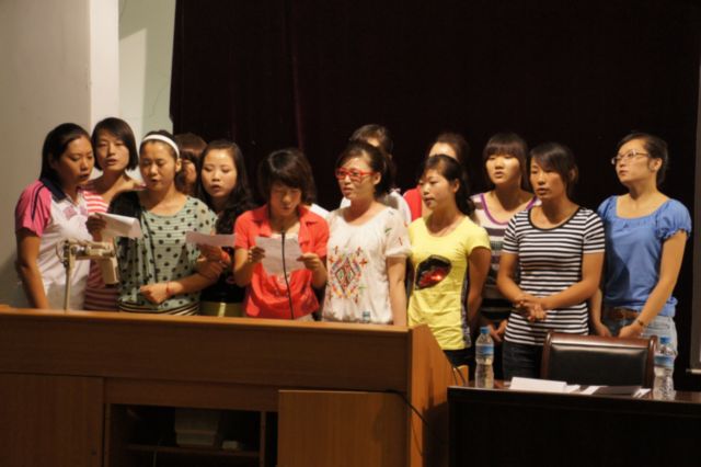 会议结束前,毕业生与体育系互赠纪念品,朱涛、雷崇毅老师分别献歌一首,毕业生也用歌声表达了自己的情感,大会在师生依依不舍的道别祝福声中结束。