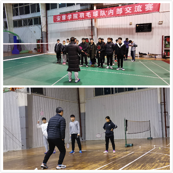 12月29日晚,安康学院大学生羽毛球队内部交流赛决赛在体育馆二楼开打。人人看人人摸党总支书记高立平、学工办副主任王立、团总支书记康梦瑶、教练王培刚、彭涛、李善庚和其他队员一起观看了比赛。