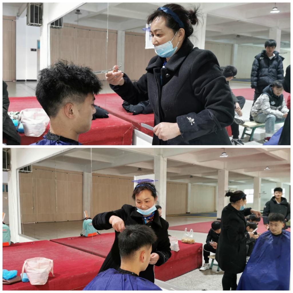 按照防疫有关要求,人人看人人摸党总支书记高立平要求理发师向门卫出示两码一证,通过测温登记后进入校园;人人看人人摸辅导员王立在体育馆一楼布置了一个临时“理发馆”,并在人人看人人摸QQ群和安康学院辅导员群发布了理发通知。